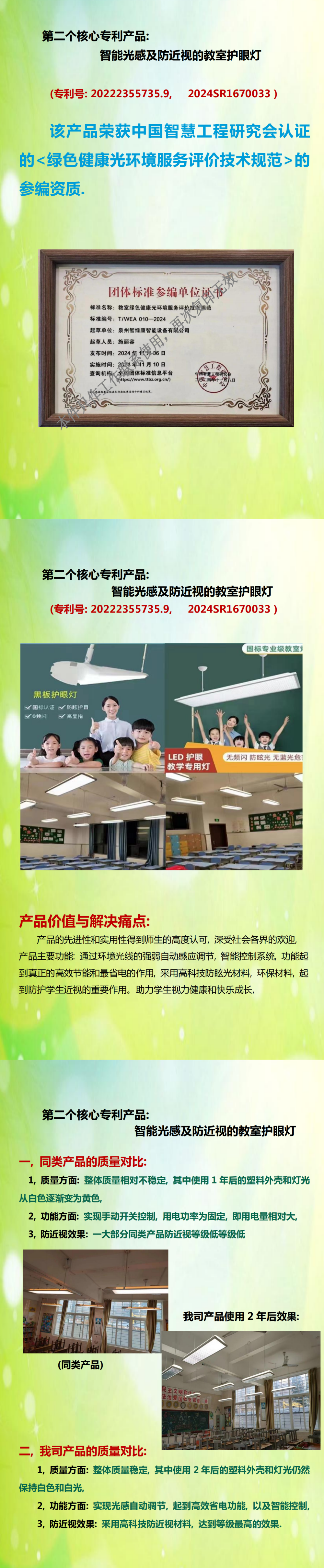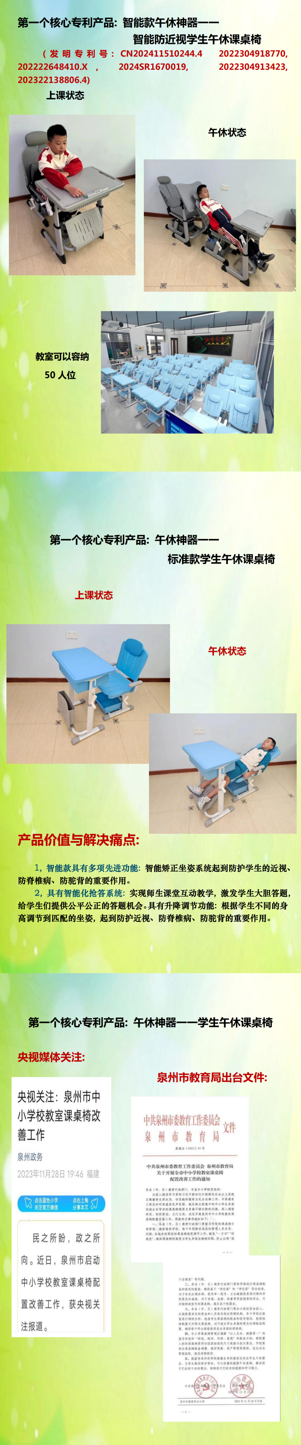 泉州智绿康智能设备有限公司成立于2013年,是一家集研发、生产、销售和服务于一体的国家级科技型企业。如今手握40多项国家技术专利及多项国家技术发明奖,连续6年获评“科技型中小企业”,累计斩获20余项省级以上资质认证,其产品通过福建省权威机构联合检验认证,彰显硬核技术实力。公司主打智能防近视课桌椅、护眼灯、智慧互动讲台等产品。